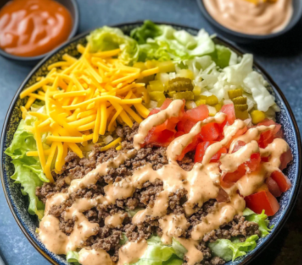 Big Mac Bowls are a healthy twist on the classic burger, combining lean ground beef, special sauce, lettuce, cheese, and toppings all in one bowl.