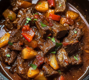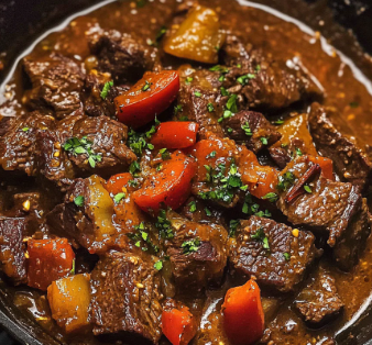 Caçoila, or Portuguese stewed beef, is a delightful dish that brings warmth and comfort to any table. This recipe features tender chunks of beef slow-cooked with vibrant red peppers, aromatic spices, and a tangy sauce made from red apple vinegar and tomato. Perfect for family gatherings or cozy weeknight dinners, this hearty stew is sure to impress with its rich flavors and satisfying texture.