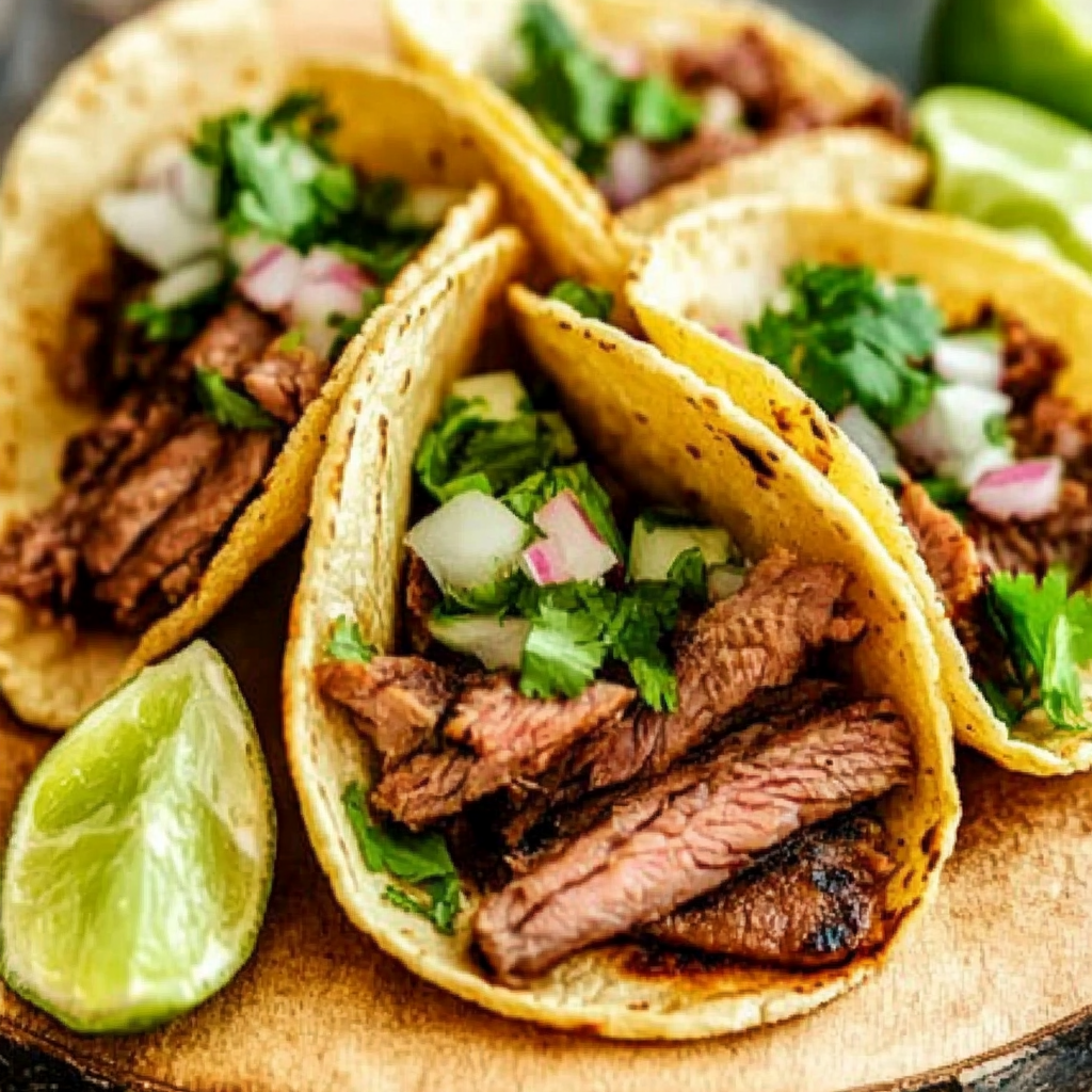 A Carne Asada Tacos Recipe features marinated and grilled beef, typically flank or skirt steak, served on tortillas with fresh toppings.