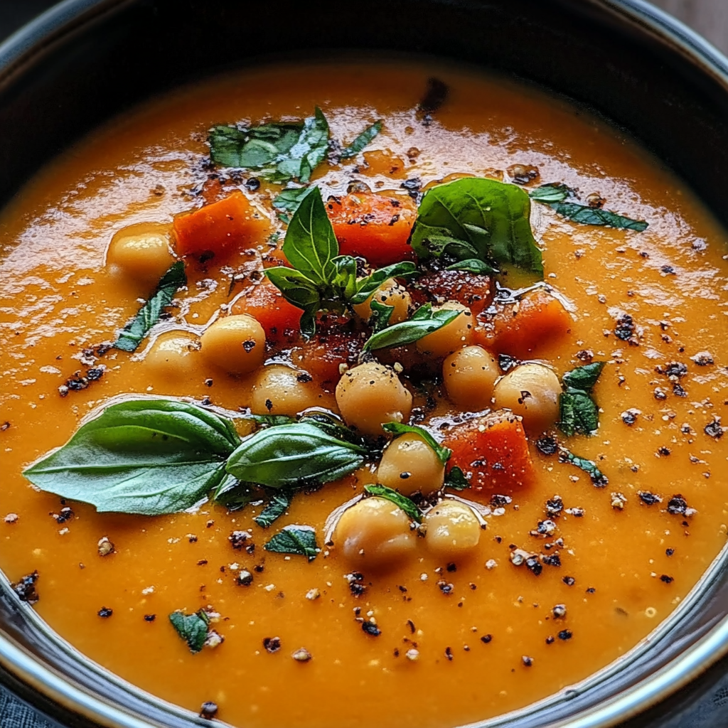 Serve hot, garnished with fresh herbs or a drizzle of olive oil if desired. Enjoy your comforting bowl of Chickpea Tomato Soup!