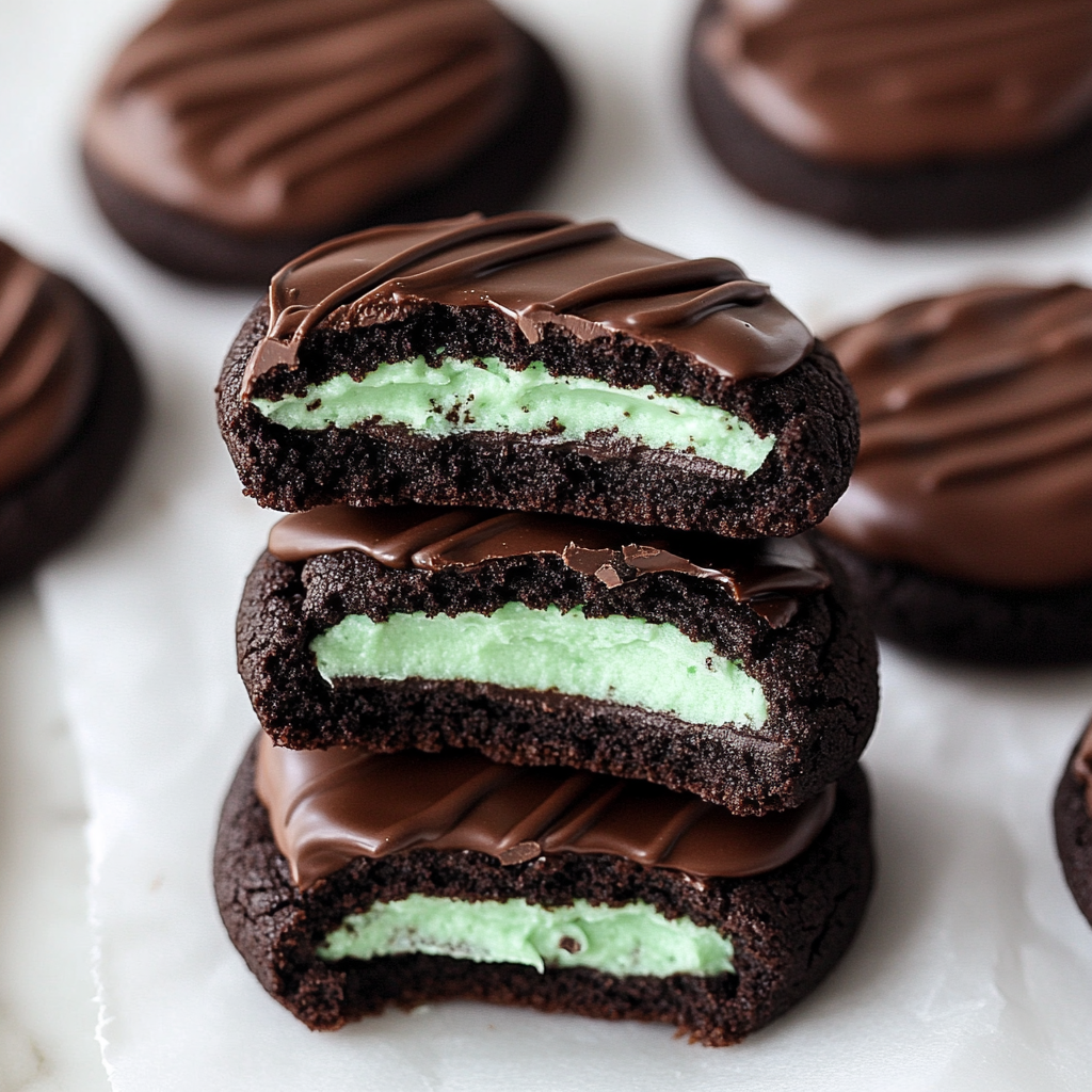Mint Chocolate Cookies have a chewy chocolate cookie base, a thick and creamy mint frosting, and are topped with a rich chocolate ganache. These delightful cookies are perfect for any occasion, from holiday gatherings to simple afternoon treats. The combination of chocolate and mint creates a flavor profile that is both refreshing and indulgent, making them a standout dessert choice.