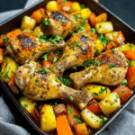 Garlic Herb Chicken Drumsticks with Roasted Veggies is a flavorful, one-pan wonder that combines tender chicken drumsticks marinated in aromatic herbs with a colorful medley of roasted vegetables. This recipe offers a delightful balance of savory tastes and vibrant colors, making it perfect for family dinners or casual gatherings. With minimal prep and cleanup, you’ll spend less time in the kitchen and more time enjoying delicious food with loved ones. The dish is not only easy to prepare but also packed with protein and nutrients, ensuring a satisfying meal that everyone will love.