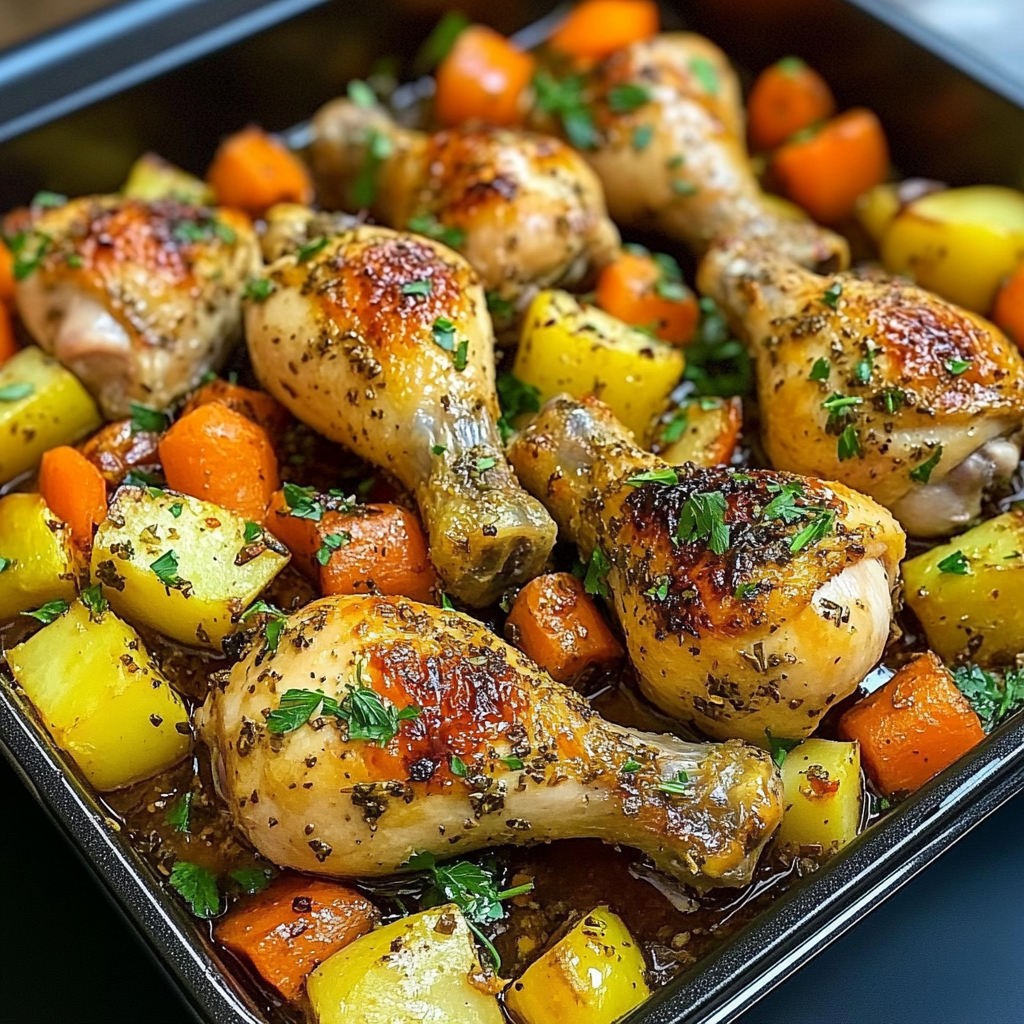 Garlic Herb Chicken Drumsticks with Roasted Veggies