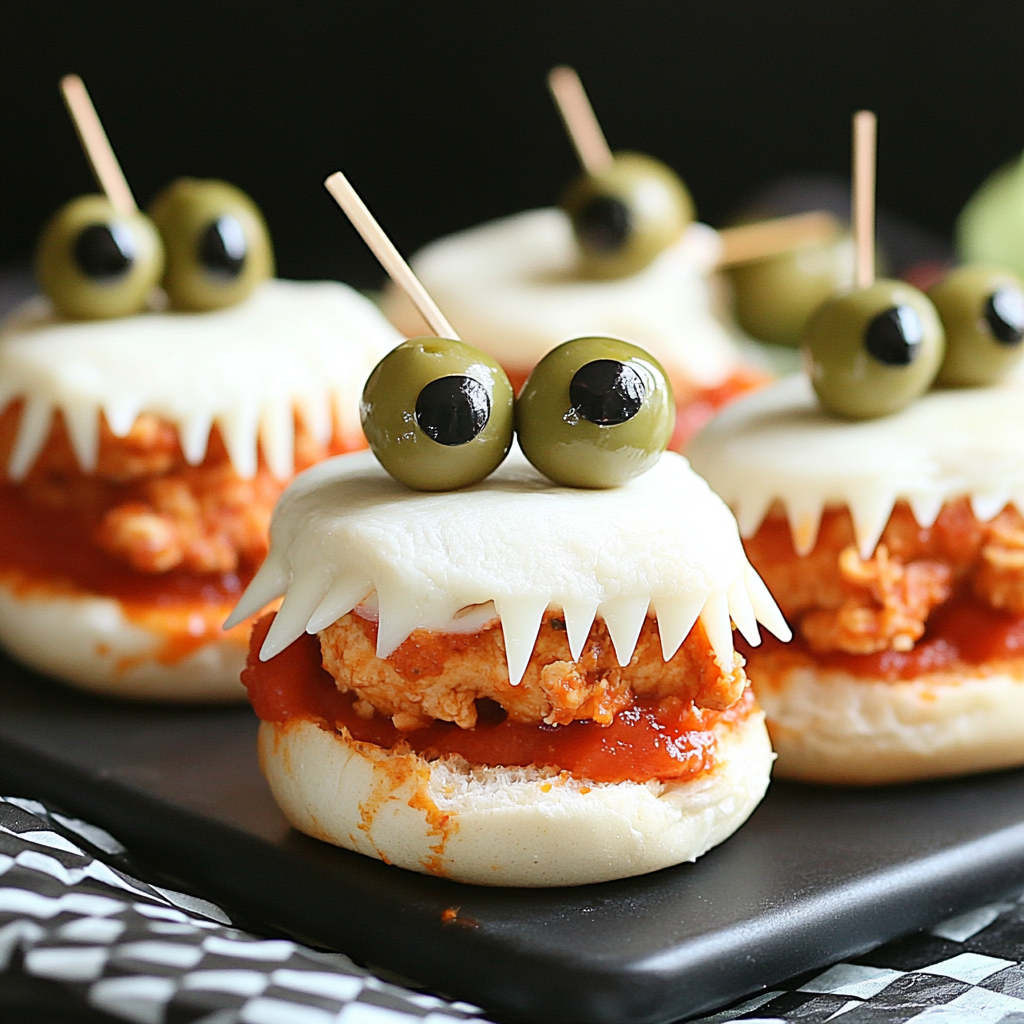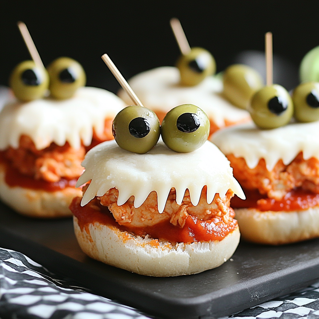 Halloween Chicken Parm Sliders are a delightful twist on the traditional chicken parmesan, perfect for your festive gatherings. These sliders feature crispy chicken tenders topped with gooey mozzarella cheese and quirky olive ‘eyes,’ making them an instant hit among both kids and adults. Easy to assemble, they’re a fun addition to any Halloween celebration, whether it’s a lively party or a cozy movie night. With layers of flavor from marinara sauce and melted cheese, these sliders are sure to leave your guests asking for seconds.