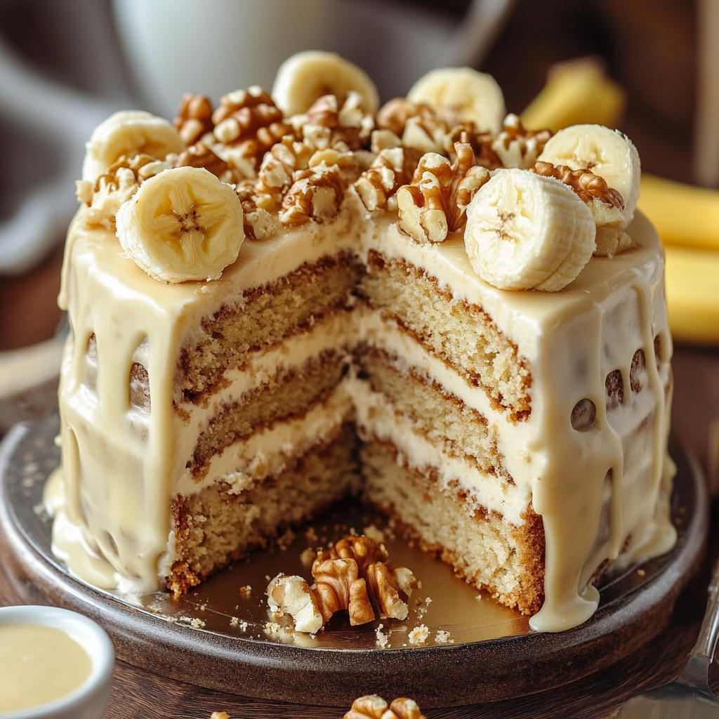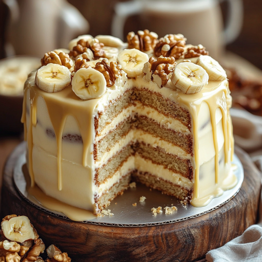 Heavenly Banana Walnut Cream Cake