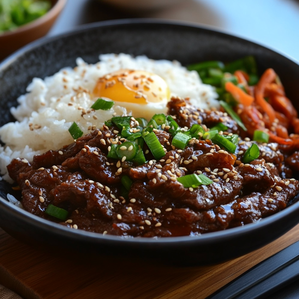 Korean Beef Bulgogi is a traditional Korean dish made with marinated beef that is grilled or pan-fried until caramelized. It’s known for its sweet and savory flavor profile.