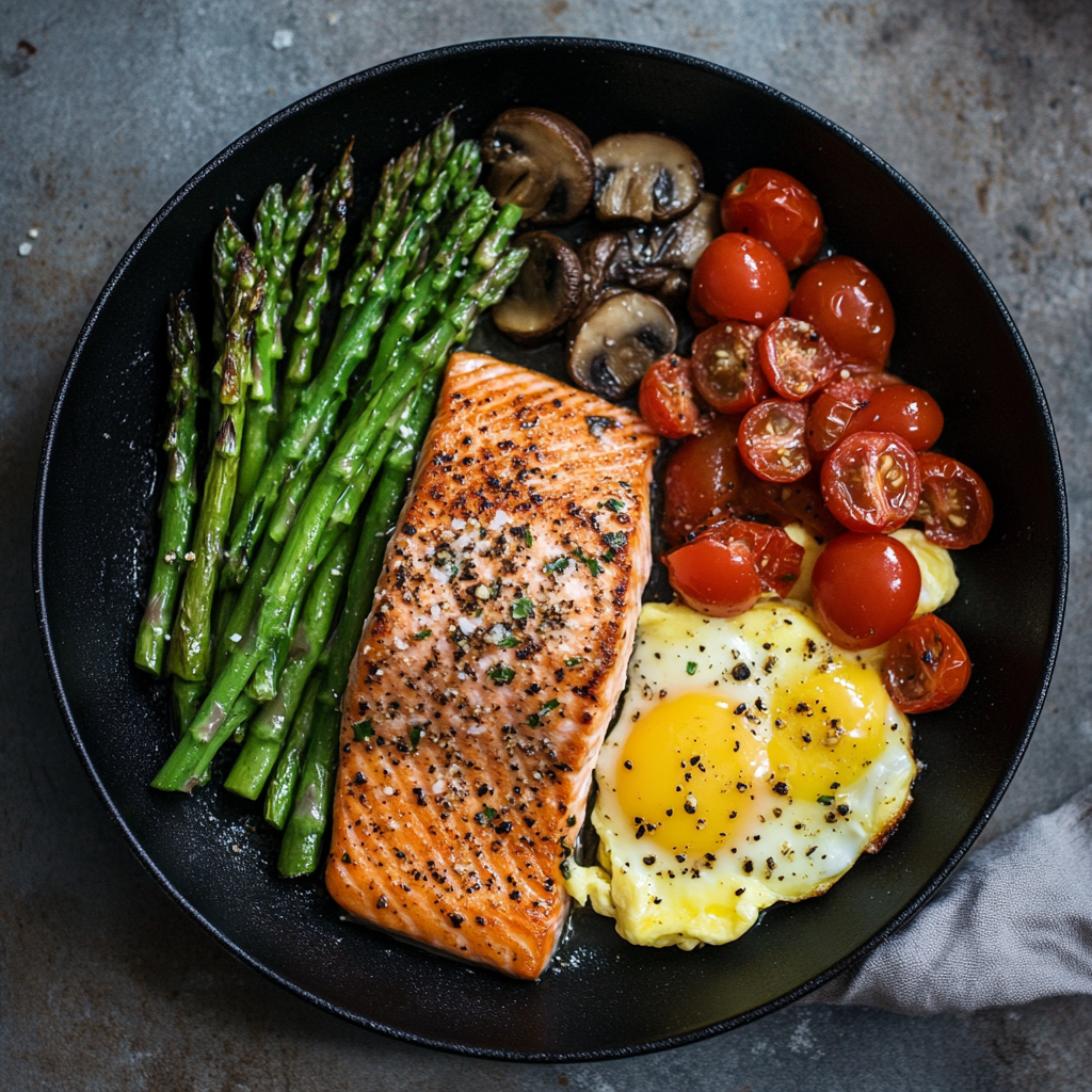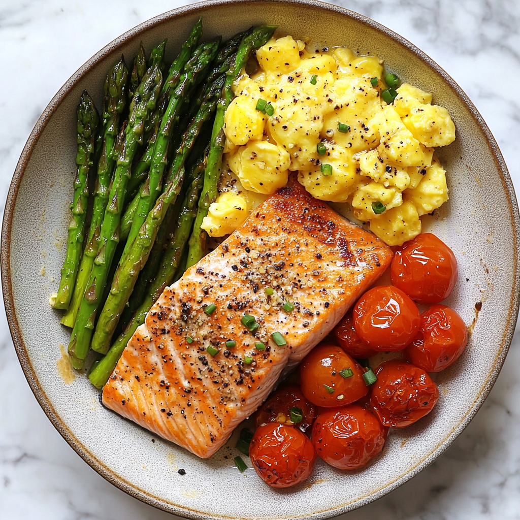 Nourishing Pan-Seared Salmon with Asparagus and Scrambled Eggs