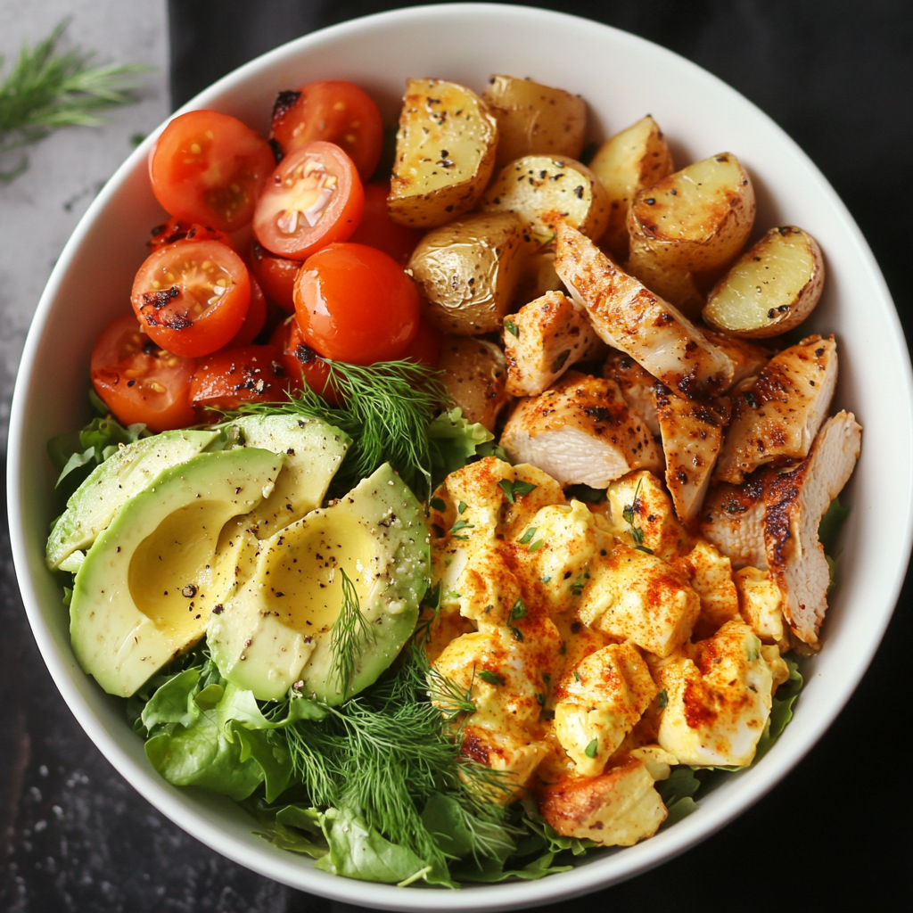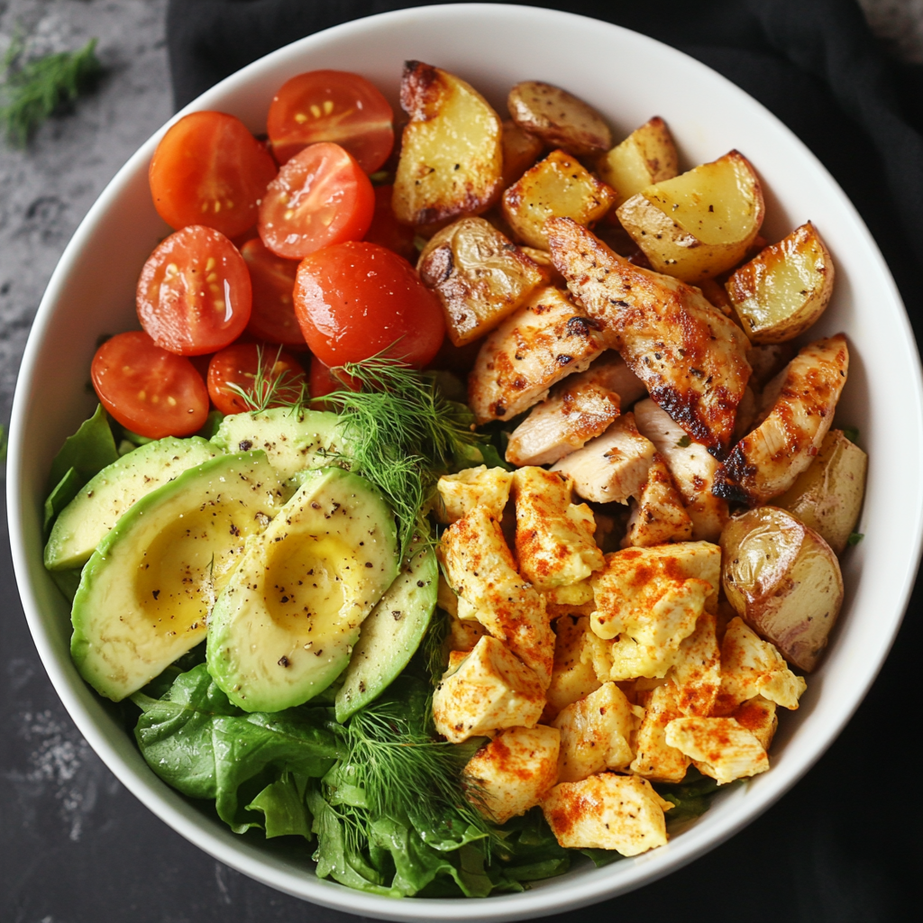 Protein Power Bowl with Avocado, Eggs, and Chicken