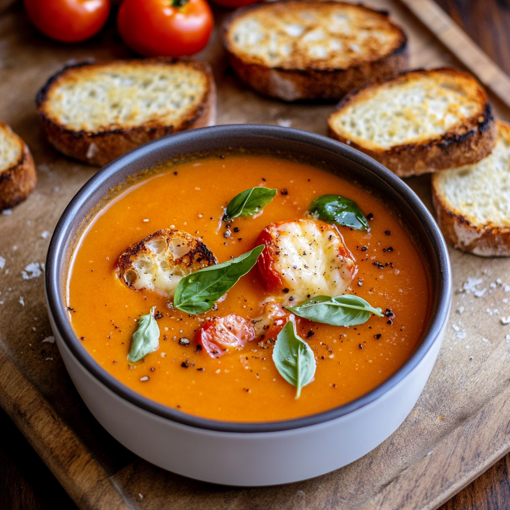 Enjoy a cozy bowl of Roasted Tomato Soup with Crispy Gruyère Toasts that’s easy to prepare. Perfect for chilly evenings—try it today!