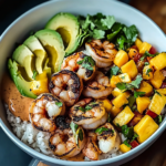 Shrimp and Avocado Bowls with Mango Salsa & Lime-Chili Sauce are a vibrant and refreshing dish that brings a taste of the tropics to your table. Perfect for casual lunches, festive gatherings, or meal prepping, this recipe is quick to prepare and packed with wholesome ingredients. Featuring grilled shrimp, creamy avocado, and zesty mango salsa, each bowl promises a burst of flavor with every bite. The addition of a tangy lime-chili sauce elevates the dish, making it an irresistible choice for seafood lovers and health enthusiasts alike.