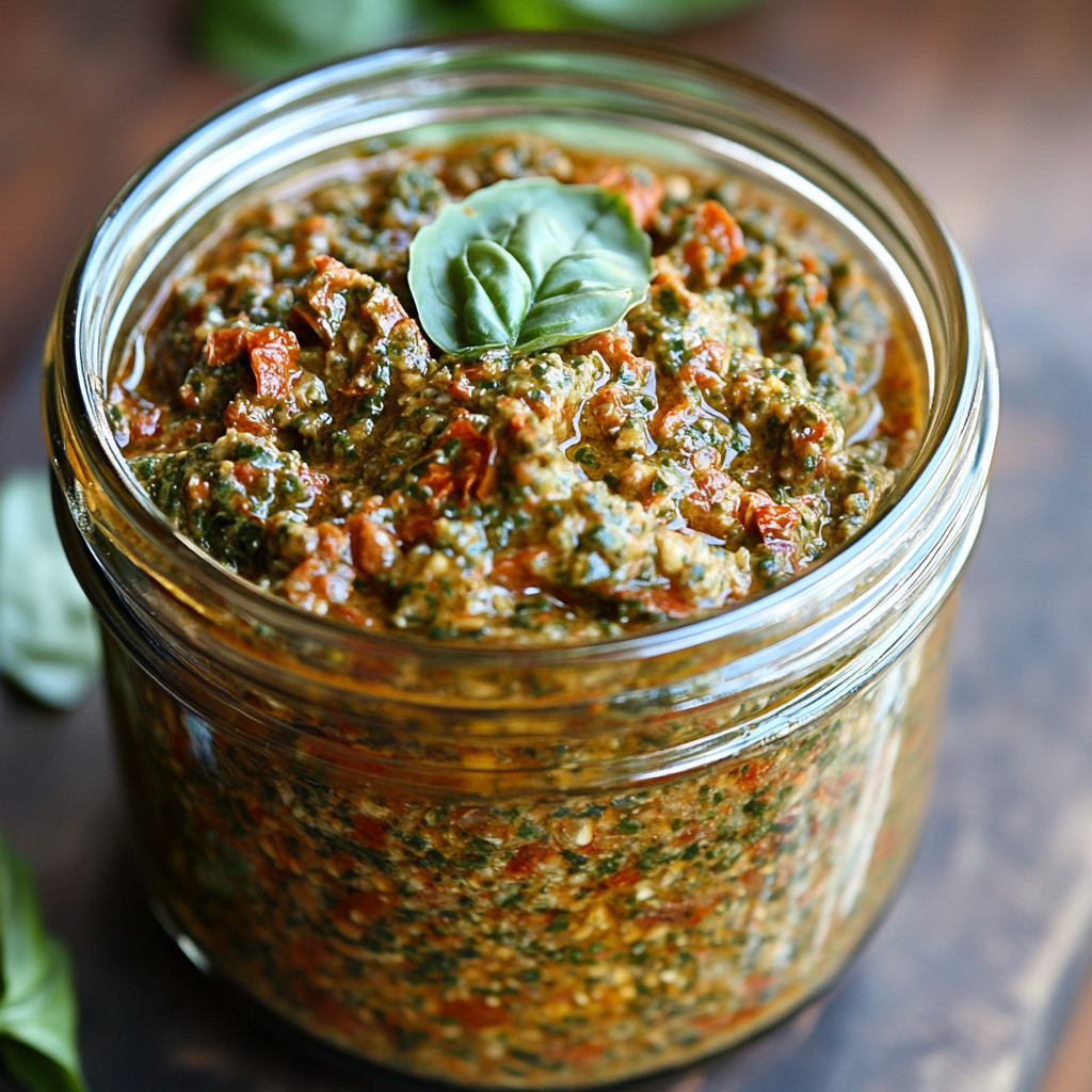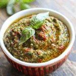 Sun-Dried Tomato and Basil Pesto is a vibrant and flavorful sauce that elevates any dish. This easy-to-make pesto is perfect for tossing with hot pasta, spreading on crusty bread, or serving as a dip at gatherings. With its rich taste and fresh ingredients, it’s suitable for various occasions—from weeknight dinners to festive parties. Plus, it captures the essence of summer in every bite.